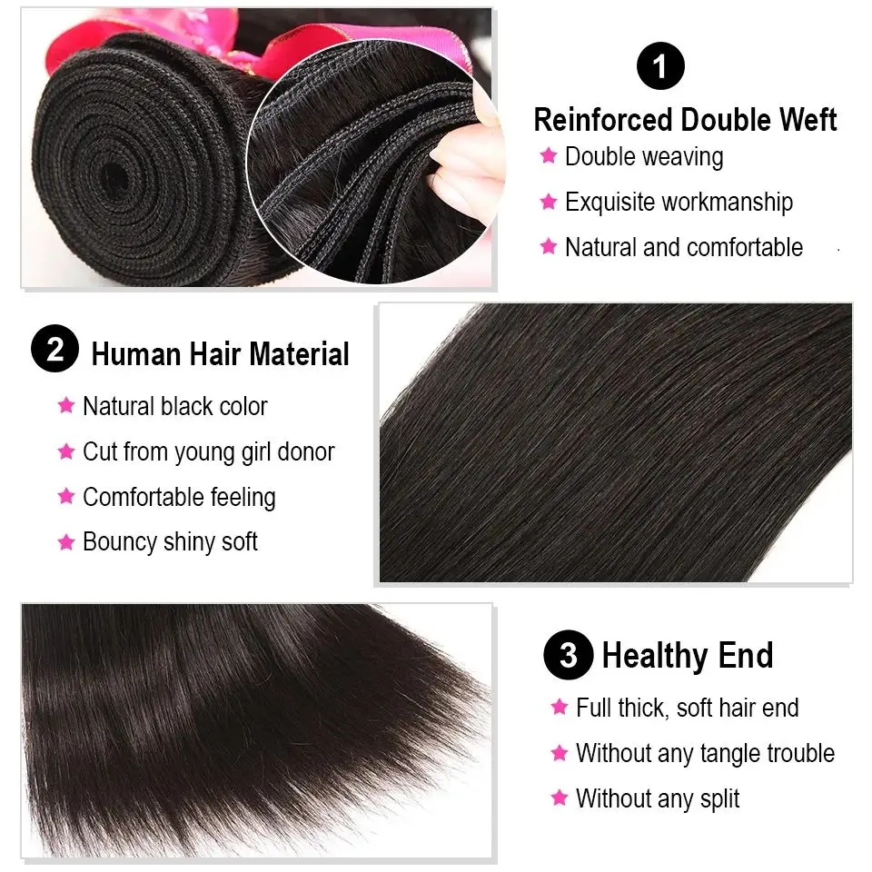 30 32 Inch 12A Indian Straight Human Hair Bundles 100% Raw Human Hair 3 Bundle Deals Human Hair Weaving Natural Hair Extensions