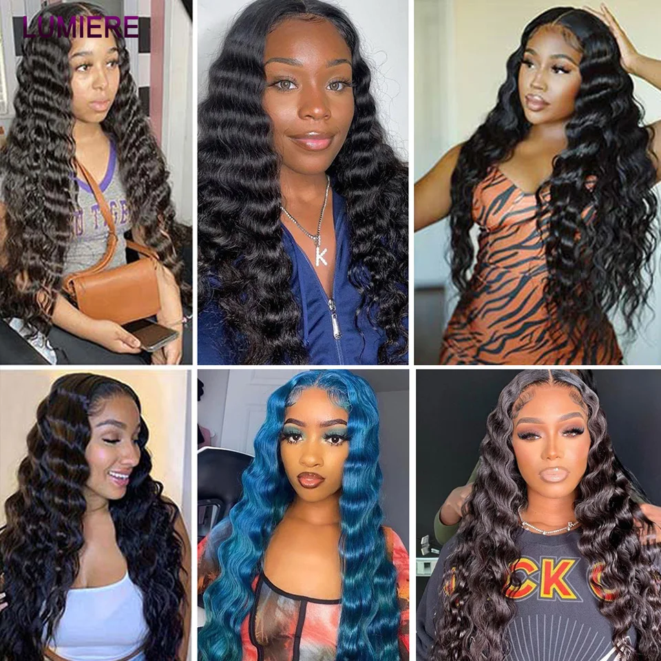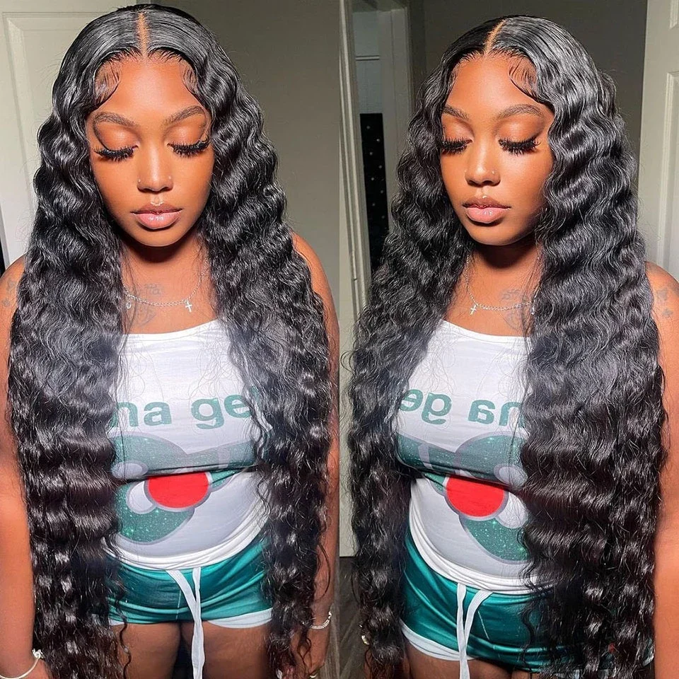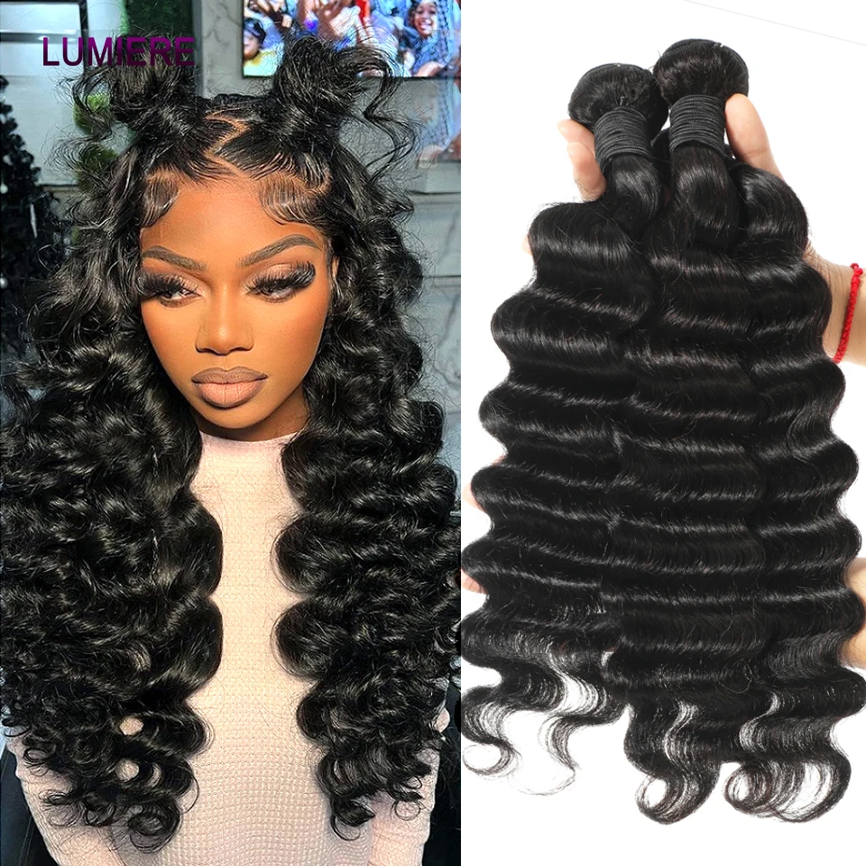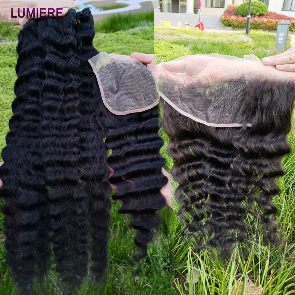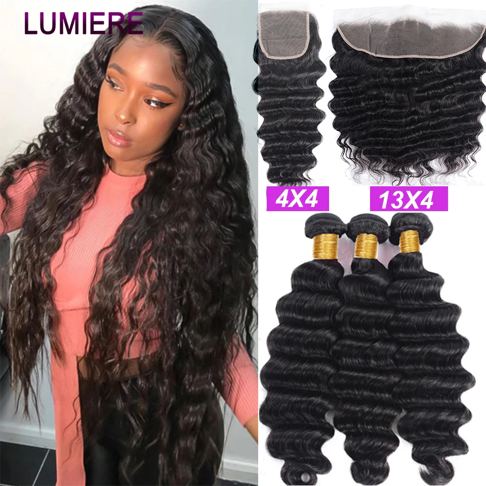 32 40 ” Loose Deep Wave Bundles with Closure Peruvian Deep Hair Weave Bundle with Frontal HD Transparent Lace Closure And Bundle