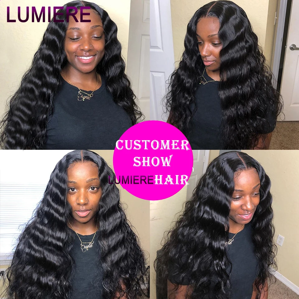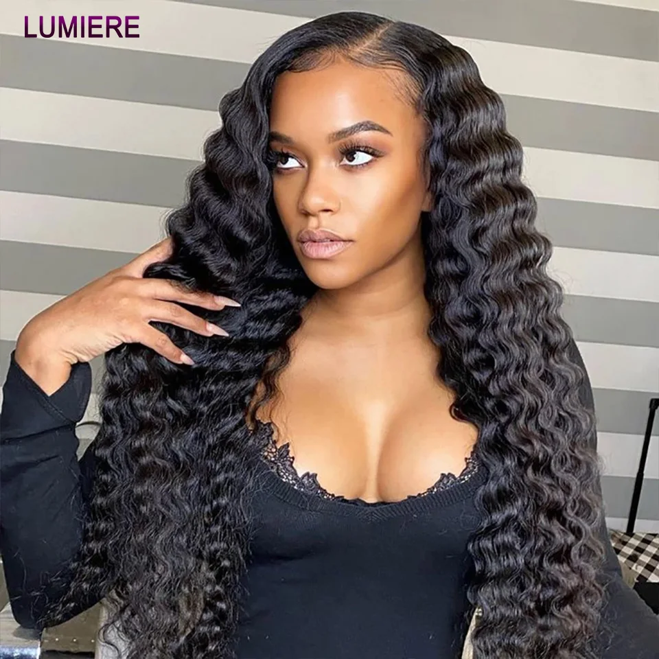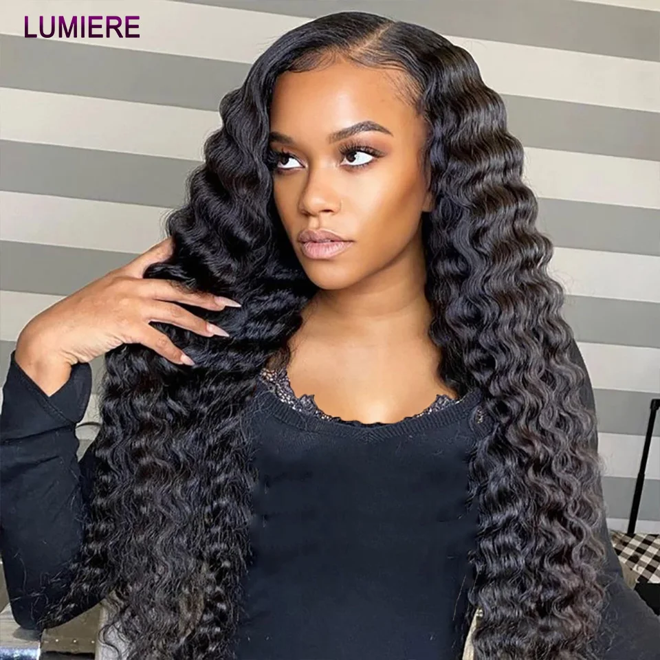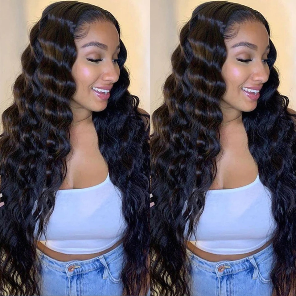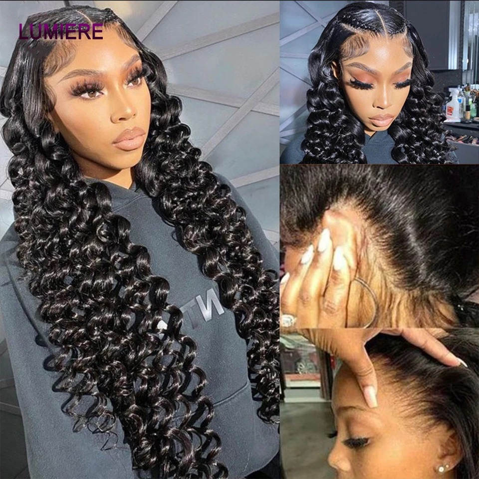 32 40 ” Loose Deep Wave Bundles with Closure Peruvian Deep Hair Weave Bundle with Frontal HD Transparent Lace Closure And Bundle
