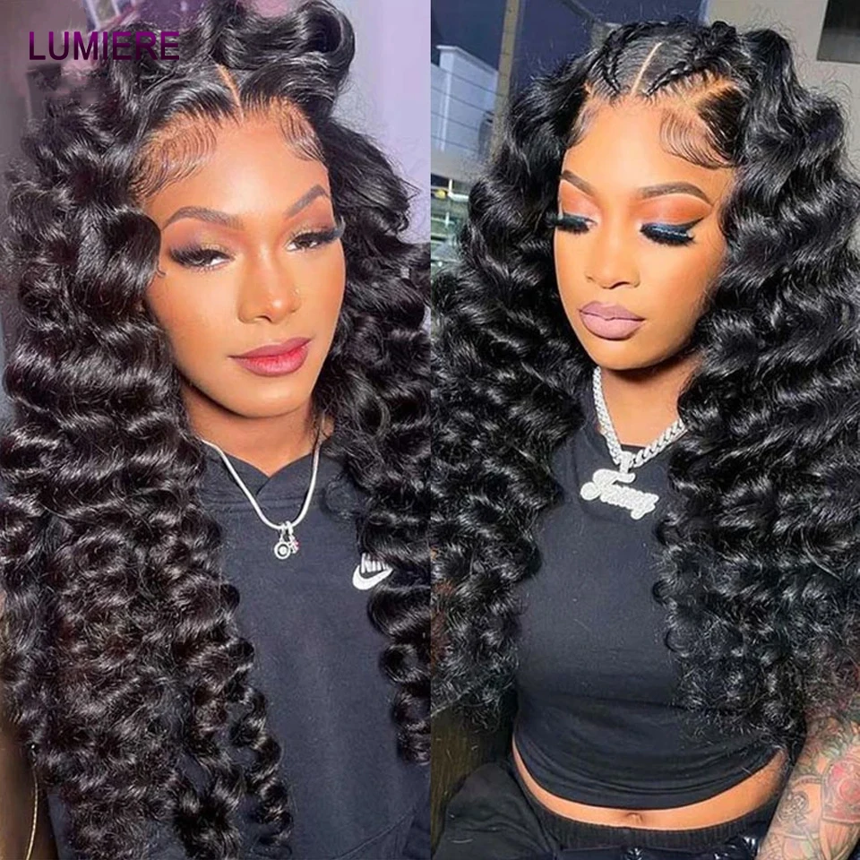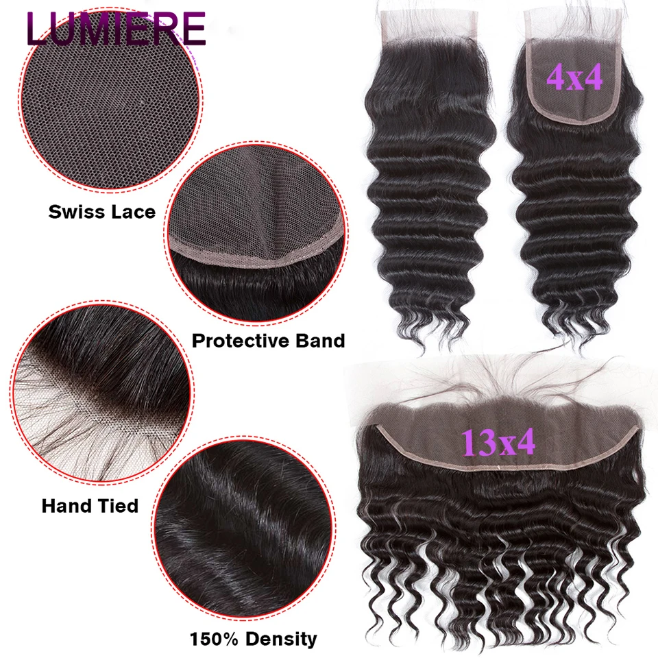 32 40 ” Loose Deep Wave Bundles with Closure Peruvian Deep Hair Weave Bundle with Frontal HD Transparent Lace Closure And Bundle