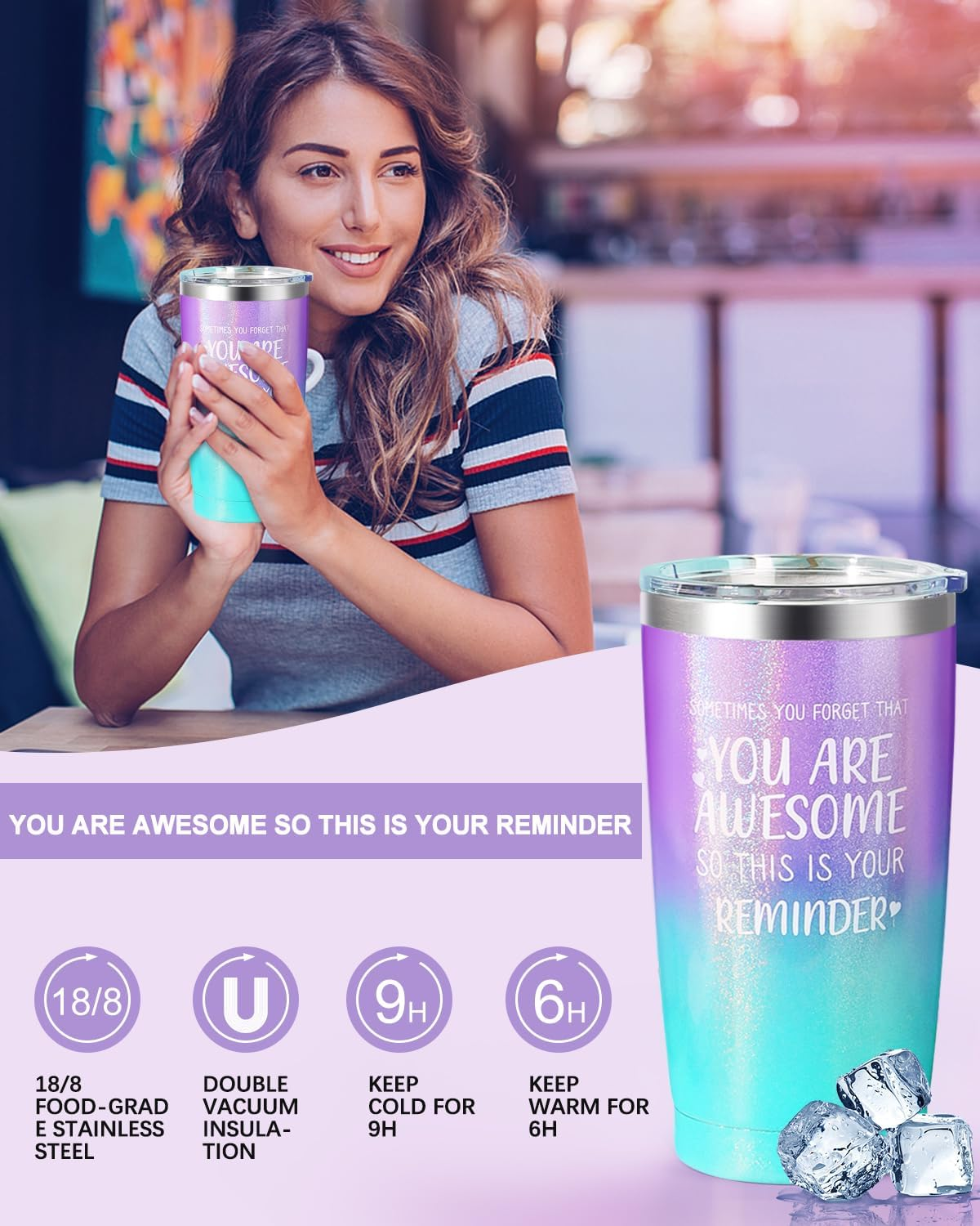• Practical Birthday Gift Basket for Women: Every item in our birthday gifts box for women is carefully selected, contains 1*20oz insulated tumbler, 1*lavender hand cream, 1*lavender scented candle, 1*diamond handmade soap, 1*bath loofahs, 1*bath bomb, 1*bath salts, 1*greeting card. A greeting card is included in the gift box and you can write your blessing to your loved. This will be her most touching moment to her