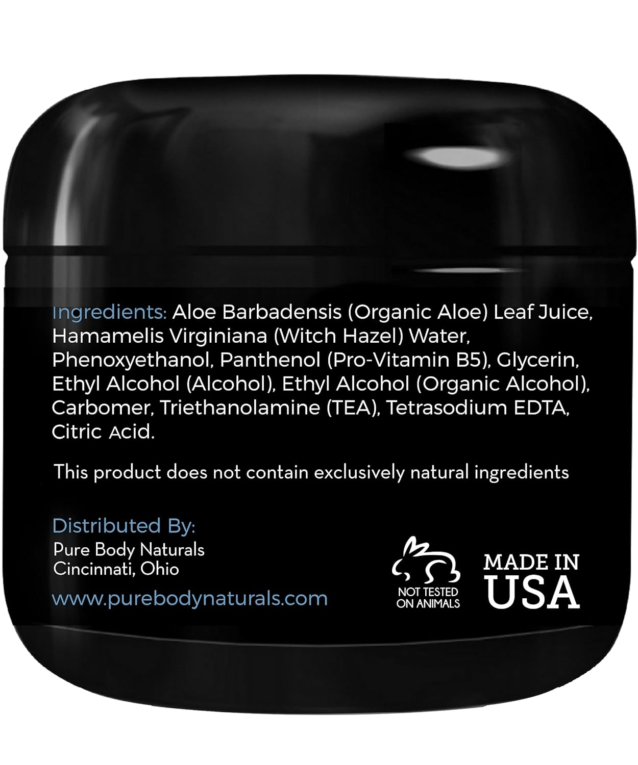 Ingredients: Aloe Barbadensis (Organic Aloe) Leaf Juice, Hamamelis Virginiana (Witch Hazel) Water, Phenoxyethanol, Panthenol (Pro-Vitamin B5), Glycerin, Ethyl Alcohol (Alcohol), Ethyl Alcohol (Organic Alcohol), Carbomer, Triethanolamine (TEA), Tetrasodium EDTA, Citric Acid