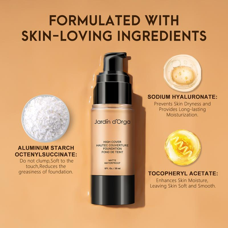 Jardin D'Orga Foundation Matte Waterproof Long Lasting Natural Makeup Liquid Foundation with Full Coverage Concealer CosmeticJardin D’Orga Foundation Matte Waterproof Long Lasting Natural Makeup Liquid Foundation with Full Coverage Concealer Cosmetic