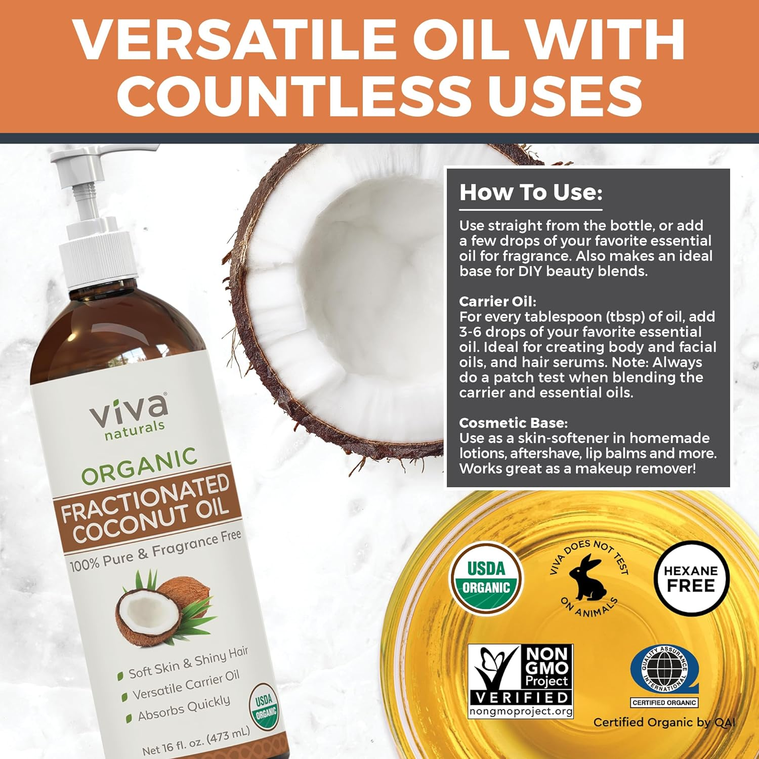 - LIQUID COCONUT OIL FOR SKIN – Ultra-hydrating and easily absorbed fractionated coconut oil will leave your skin feeling silky smooth and nourished. With no greasy residue, apply as a coconut oil moisturizer after a shower or use it as a massage oil.