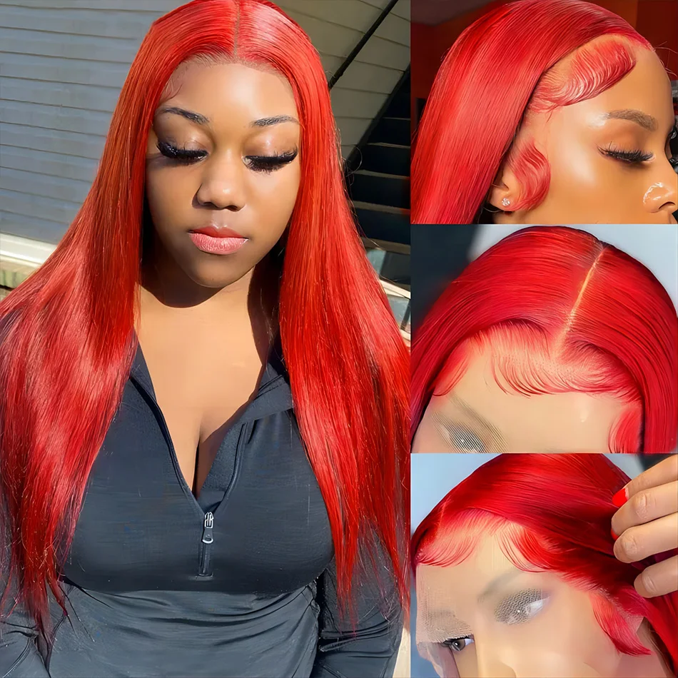 Red HD Lace Front Wig 13×4 Straight Lace Frontal Wig 100% Brazilian 99J Colored Human Hair Glueless Wigs For Women On Promotion