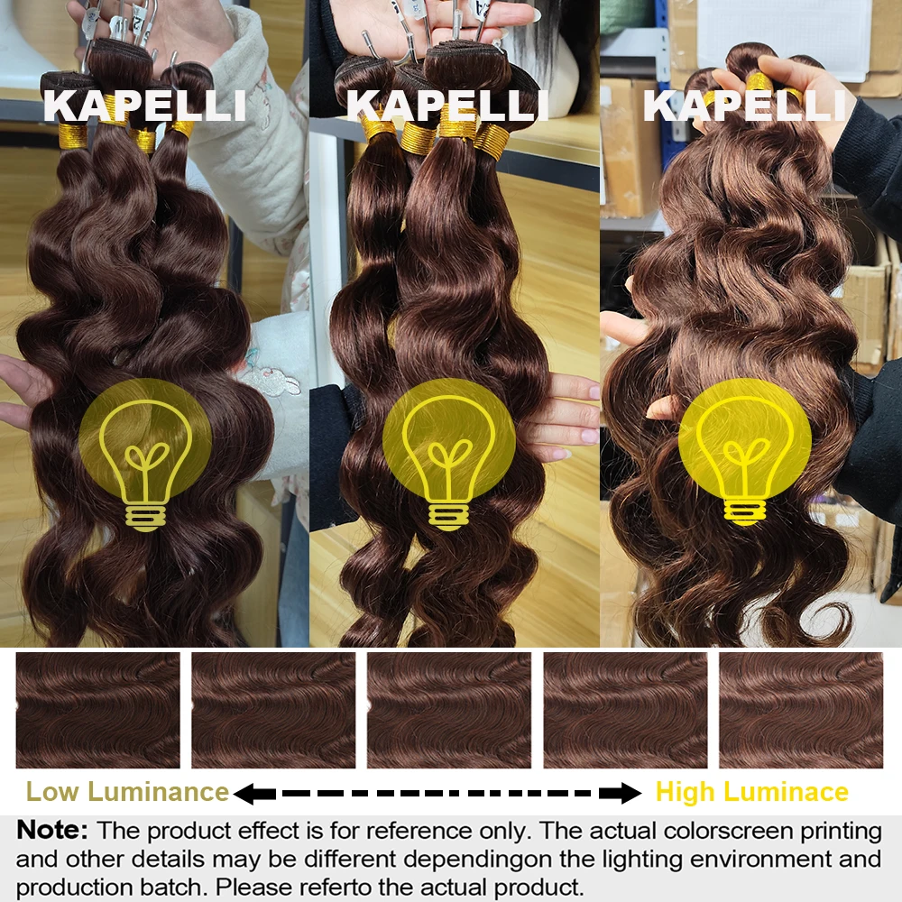 Light chocolate brown hair body wave is very beautiful and fashionable. Can make sew in, ponytail or wigs. It can also be bleached, dyed, permed and styled like your own hair, made of high quality human hair, making it durable and long-lasting.The color will have a little difference in difference light.